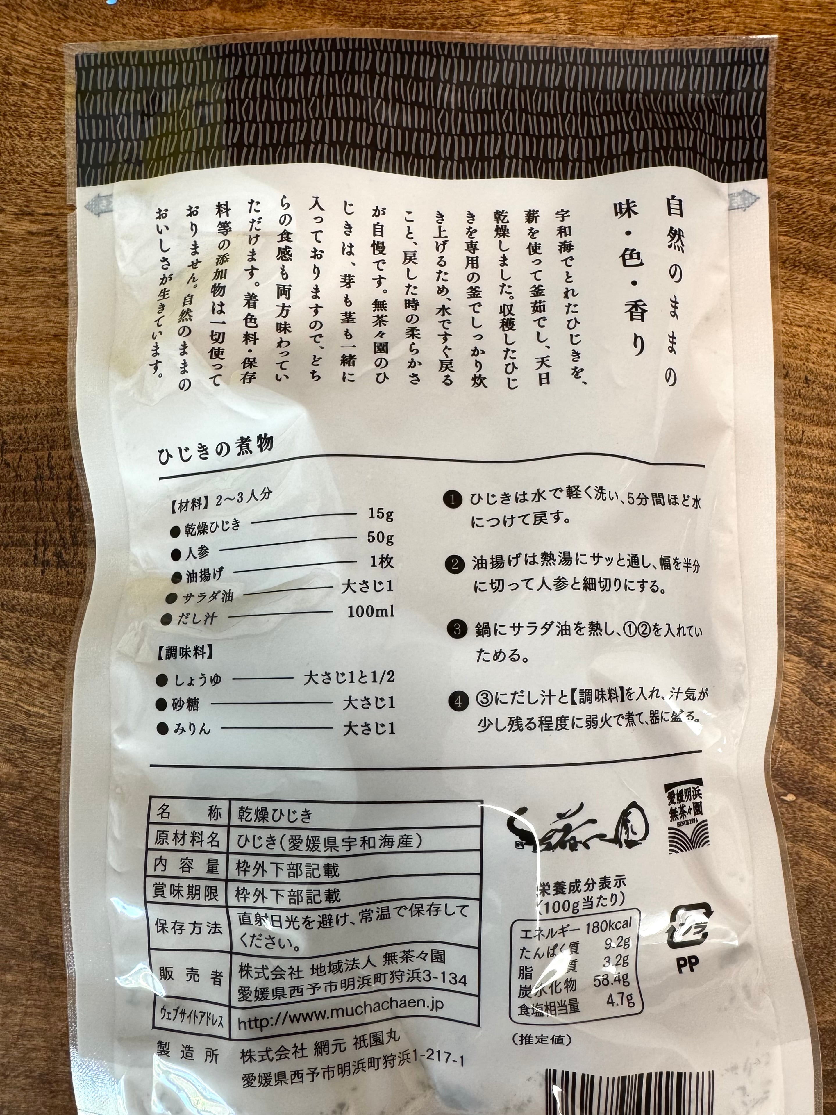 ・原材料名 ひじき(愛媛県宇和海産)